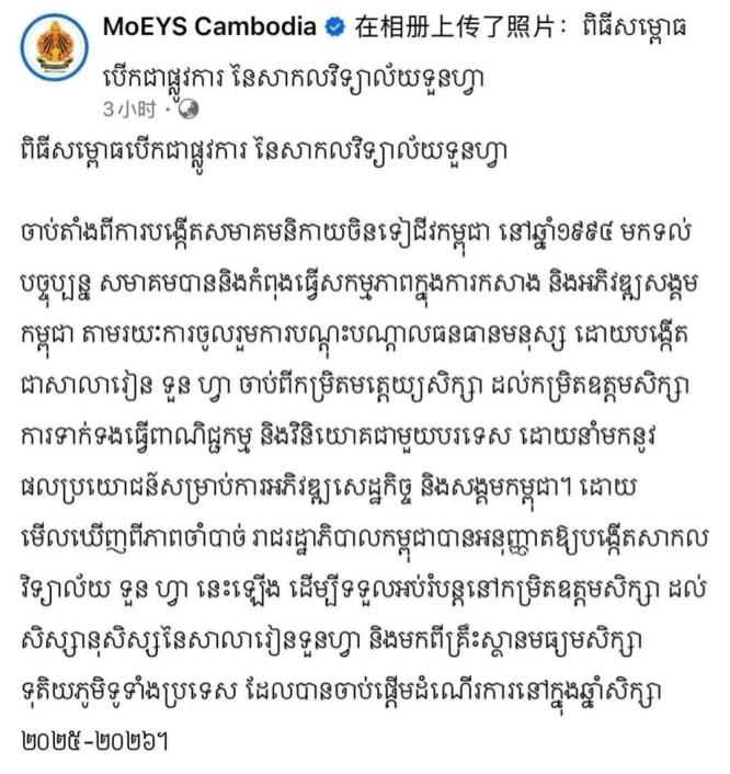 2025年8月11日上午,柬埔寨潮州会馆在金边隆重举行端华大学揭牌仪式暨“2025—2026学年”开学典礼。