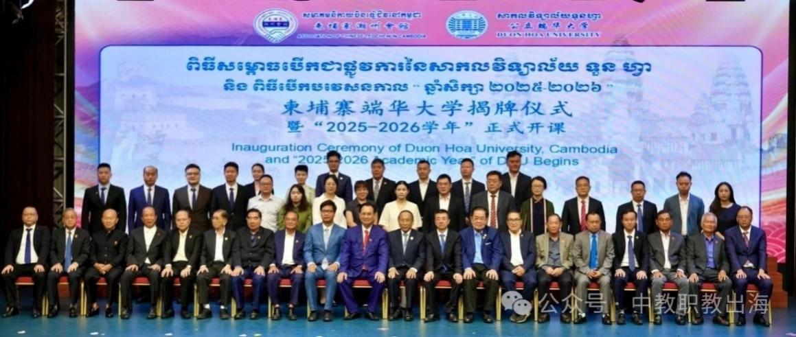 此次授牌仪式标志着我校与柬埔寨端华大学共建的“海外工程技术学院”正式成立。“海外工程技术学院”计划选聘优秀师资,重点围绕新能源汽车技术、商业管理、物流与运输、建筑工程、智能制造及康养技术六大领域开展合作,精准对接柬埔寨的人力资源发展需求。 我校将与东盟国家的职业教育交流合作作为学校发展的重要战略目标,在人才培养、文化交流等方面开展一系列工作。学校结合企业人才培养需求,坚持“教随产出”,创新“中文+技能”培养模式,制定符合柬埔寨产业需求的人才培养方案,开发适应柬埔寨学生特点的课程体系和课程资源,不断提升人才培养质量,助力当地的产业发展与经济进步。