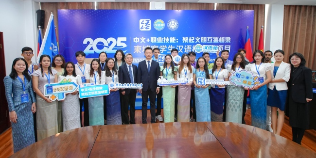 谢永华代表学校欢迎远道而来的师生们来到南京。他指出,近年来,我校积极推动“中文+职业技能”教育发展。作为教育部中外语言交流合作中心全国首家“中文+职业技能”国际推广基地,我校先后为来自柬埔寨等东盟国家的4000余名本土师生开展了“中文+职业技能”培训,2025年成功举办“江苏—东盟国家教育合作交流会”、东盟国家“中文+职业技能”教育发展研讨会、世界职业院校技能大赛东南亚赛区比赛,获柬埔寨政府颁发的“杰出大学教育贡献奖”,以表彰我校对柬埔寨本土技术技能人才培养所做出的杰出贡献。本次研习营中10余名学员是东南亚赛区的获奖选手,希望同学们在后续比赛中取得好成绩,在活动中与中国师生互学互鉴、增进理解,为推动中柬教育合作、促进两国人文交流贡献青春力量。