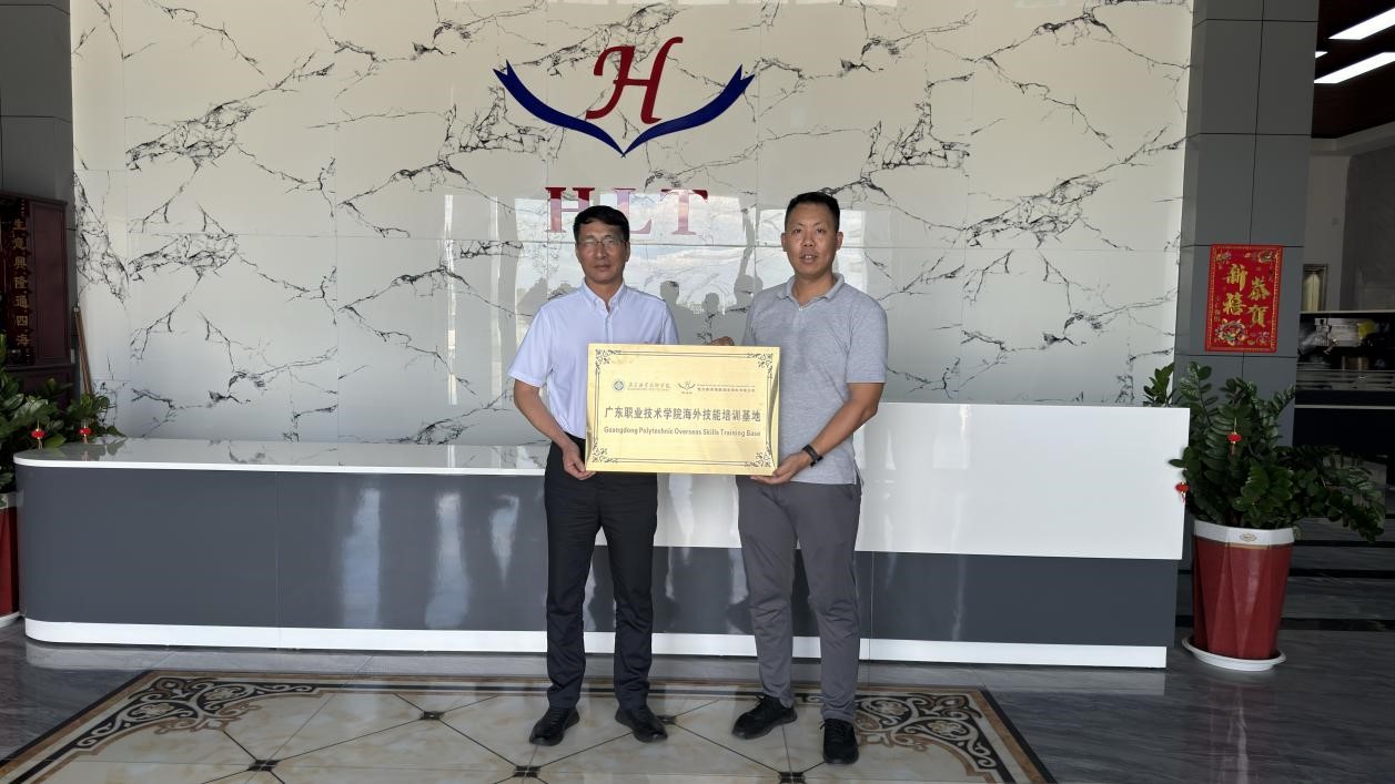 黄志泉一行到公司进行实地参观,与企业人员进行深入交流,了解了恒力泰公司的企业文化、生产运营,人才需求、发展战略等情况。他表示,学校将积极发挥在纺织印染领域的专业优势和教育资源,与恒力泰公司共同开展针对柬埔寨籍员工的理论知识和技术技能培训、学生海外实习实训、产品开发及校企项目科研等方面的合作,共同推动纺织印染行业的发展。恒力泰公司负责人尹阳方对此表示高度赞同,并期待通过校企合作进一步提升公司员工的专业技能水平,推动企业的创新发展,增强企业的市场竞争力,同时也为学校学生提供海外实习实训和就业的机会,帮助他们更好地适应国际市场的需求。双方经过深入交流,就校企合作达成了共识,共同举行了“广东职业技术学院海外技能培训基地”授牌仪式。