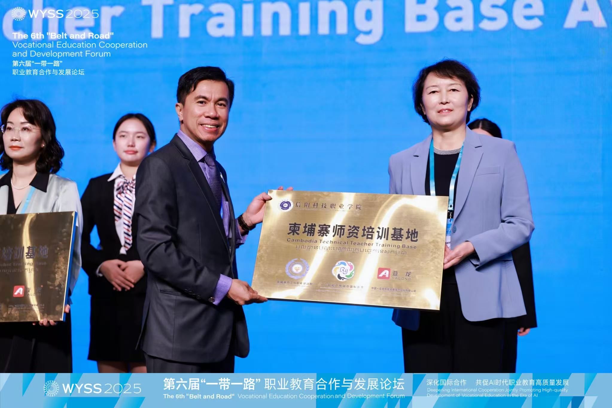 近日,第六届“一带一路”职业教育合作与发展论坛在浙江温州举行。作为2025世界青年科学家峰会的重要组成部分,本届论坛以“深化国际合作 共促AI时代职业教育高质量发展”为主题,由机械工业教育发展中心、世界青年科学家联合会联合主办,人工智能产教融合国际联盟、温州职业技术学院、亚龙智能装备集团股份有限公司共同承办。教育部中外人文交流中心主任于长学、柬埔寨劳工与职业培训部国务秘书兼副部长H.E. Chea Kosal(谢顾所)等嘉宾致开幕辞;教育部职业教育发展中心主任林宇作主旨报告。