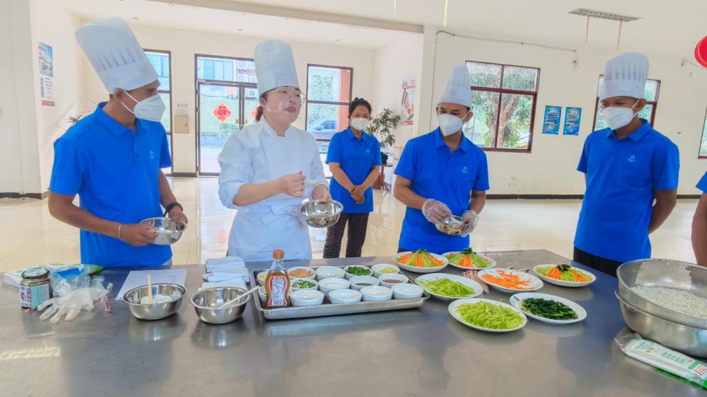 在中餐烹饪教学过程中,烹饪学院副院长沈晓文进行滇味非遗小吃实操教学,现场演示了滇味凉米线、玫瑰木瓜水的制作技艺,让当地同行近距离感受了中国饮食文化的魅力。