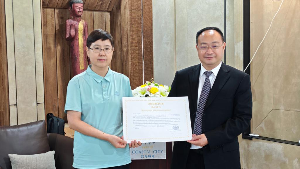 为精准赋能企业发展,代表团与滨海城市发展集团有限公司联合举办了“校企携手 技耀七星”卓越服务培训活动。在主题讲座环节,我校副院长符继红教授以“‘一带一路’与中柬旅游合作:机遇与展望”为题,系统阐述了中柬在政策框架、历史渊源和市场前景下的广阔合作空间。