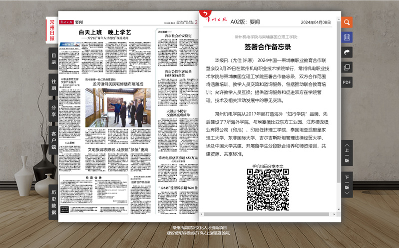 新闻链接:常州机电学院与柬埔寨国立理工学院:签署合作备忘录-媒体报道-常州机电职业技术学院