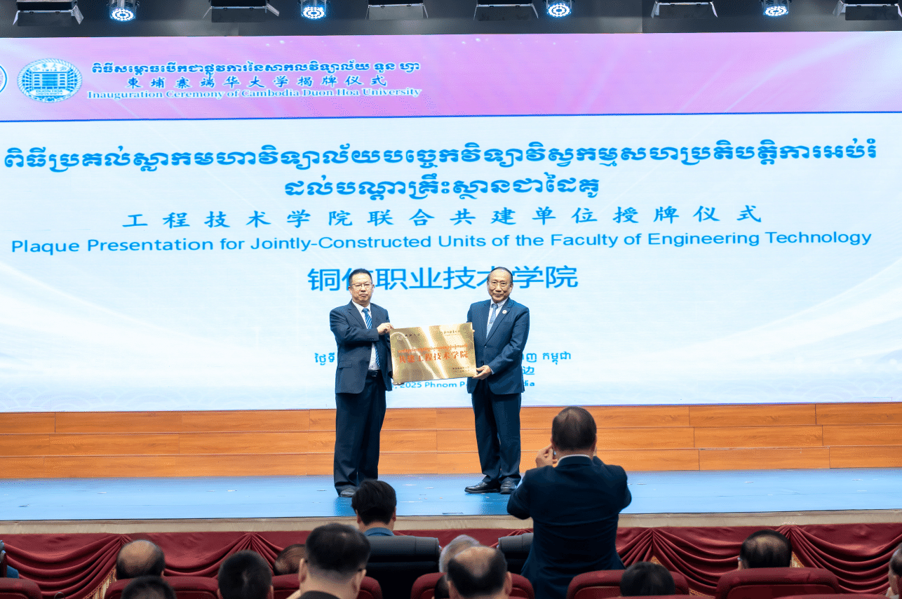 此次赴柬参加海外工程技术学院成立仪式是我校积极贯彻国家《关于深化现代职业教育体系建设改革的意见》的具体举措,标志着我校职教出海迈出了新的坚实的一步,是我校国际化办学进程中的又一个重要里程碑。这不仅为我校与柬埔寨优质教育机构建立了稳固的合作关系,也为双方未来在师生交流、课程共建、学术科研等领域的深度合作奠定了坚实基础。与端华大学共建海外工程技术学院意义深远,未来双方将以开创中柬教育合作典范为目标,搭建中柬职业教育互联互通的新平台。不仅为柬埔寨学生提供前沿技术培训,还将通过校企合作、产学研融合等方式,助力当地产业长足发展。学校将以此为契机,持续深化与端华大学务实合作,扎实推进课程输出、师资培训、学生交流等项目落地生根、开花结果,不断提升学校国际化办学水平与核心竞争力,为构建中柬命运共同体贡献铜职力量。