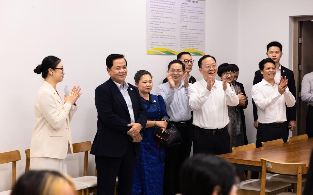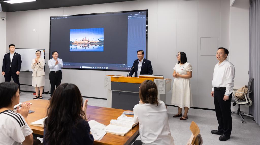 吴波烈旁听授课并与学生亲切交流,他表示,中柬友谊源远流长,中国有万里长城、柬埔寨有吴哥窟,欢迎同学们来柬埔寨参观,希望大家学业有成。陈海燕副院长介绍了柬埔寨海丝学院跨境电商人才培养项目合作进展情况。现场交流气氛热烈,学生们纷纷表达对参与中柬文化交流的期待。