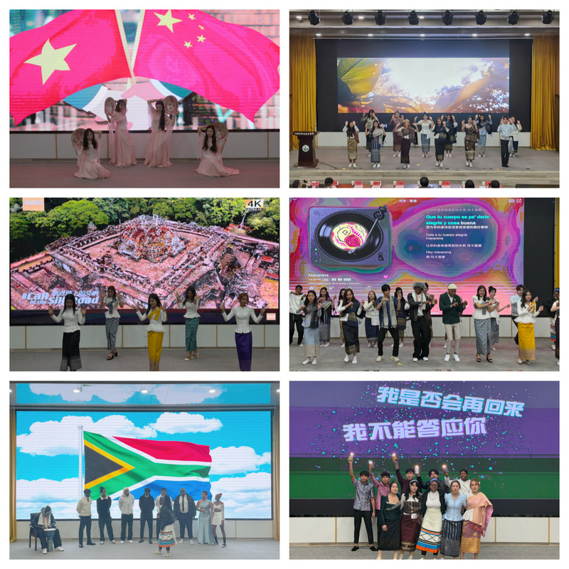 多国留学生带来的文艺表演精彩纷呈:歌舞串烧《炽舞同盟》将各国特色舞蹈巧妙融合,展现出鲜明热烈的文化碰撞;南非留学生深情演唱《妈妈》,真挚嗓音触动人心,勾起浓浓乡愁;最后一曲全体合唱《再见》,旋律温暖治愈,在全场闪烁的灯光与合唱中,气氛被推向高潮,为这个夜晚画下动人句点。