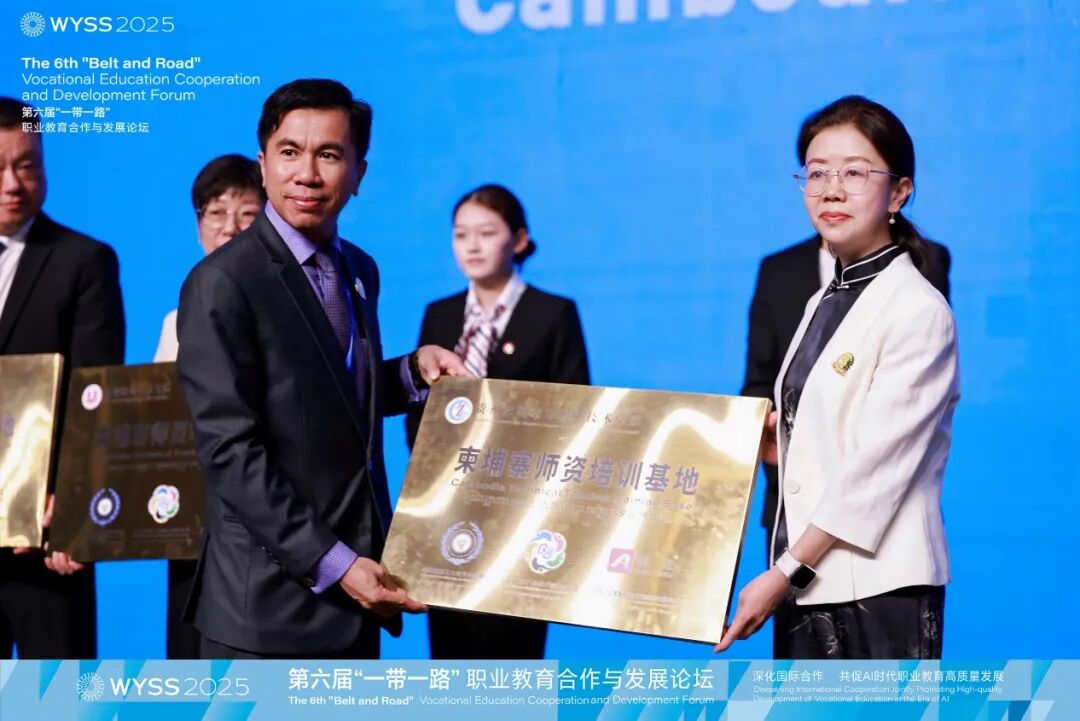 会上,柬埔寨劳工与职业培训部国务秘书(副部长)谢顾所阁下为贵州水利水电职业技术学院授牌“柬埔寨师资培训基地”。