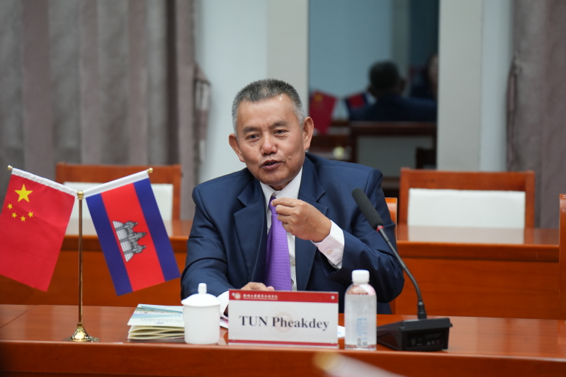 柬埔寨管理经济大学校长通菲克迪对我校的热情接待表示感谢,并表达了与我校开展合作的意愿。通菲克迪校长介绍了该校的发展历史、管理架构、学分学制、师资结构、专业设置、国际交流等情况,重点介绍了拟与我校合作的专业。随后双方在学生招生、与柬埔寨的中资企业联合培养学生、学术交流等方面开展了深入探讨。