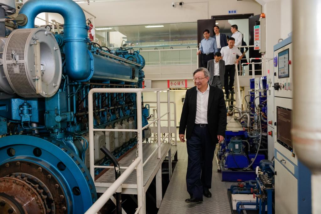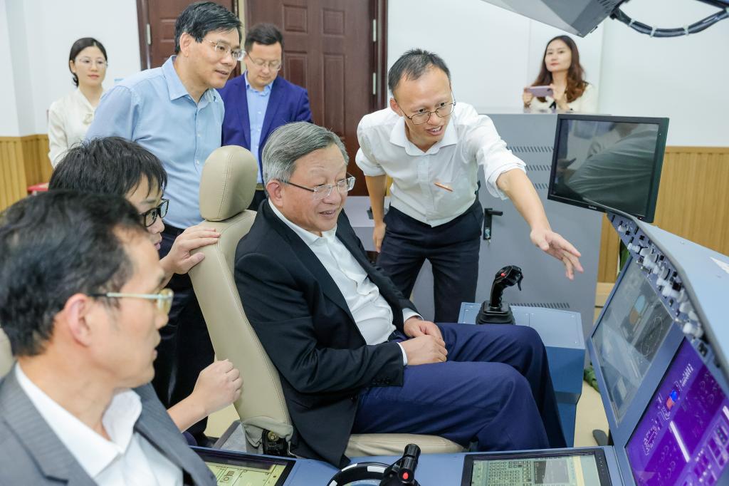 蔡秀军副主席一行首先走访了航空学院和海运学院,深入了解学院实训基地资源、设备设施规模、管理人员、师资队伍等情况,重点考察了飞机虚拟维修、航空发动机、无人机行业应用、A320模拟客舱、工业机器人、船舶自动化机舱等实训室和无人机物流枢纽站。