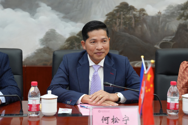 HOEURN Somnieng对我校筹办召开此次会议表示感谢。他对柬埔寨公共工程与运输学院的办学宗旨和基本情况进行了介绍,并就学校生源、学生数量和办学层次等情况进行了详细说明。他表示,柬埔寨公共工程与运输学院是柬埔寨集高等教育、培训研究于一体的一所新兴本科院校,由柬埔寨公共工程和运输部直属管理,旨在为柬方培养交通运输领域的高级工程技术人员,期待未来两校开展更多领域的合作。他指出,目前学校在交通运输、道路桥梁、物流管理等专业缺乏师资和完整的课程体系,希望我校能在师资教学、学生培养等方面为其提供支持和帮助。