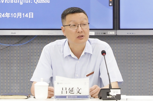 10月14日上午,我校举行衢职院“一带一路‘丝路学院 ’”柬埔寨柴桢大学留学生培训班开班仪式。校党委副书记、校长吕延文出席并讲话,党委副书记何百通主持,柬埔寨柴桢大学带队教师CHOUN PHEAKDEY、CHOU MANITH及16位同学出席。
