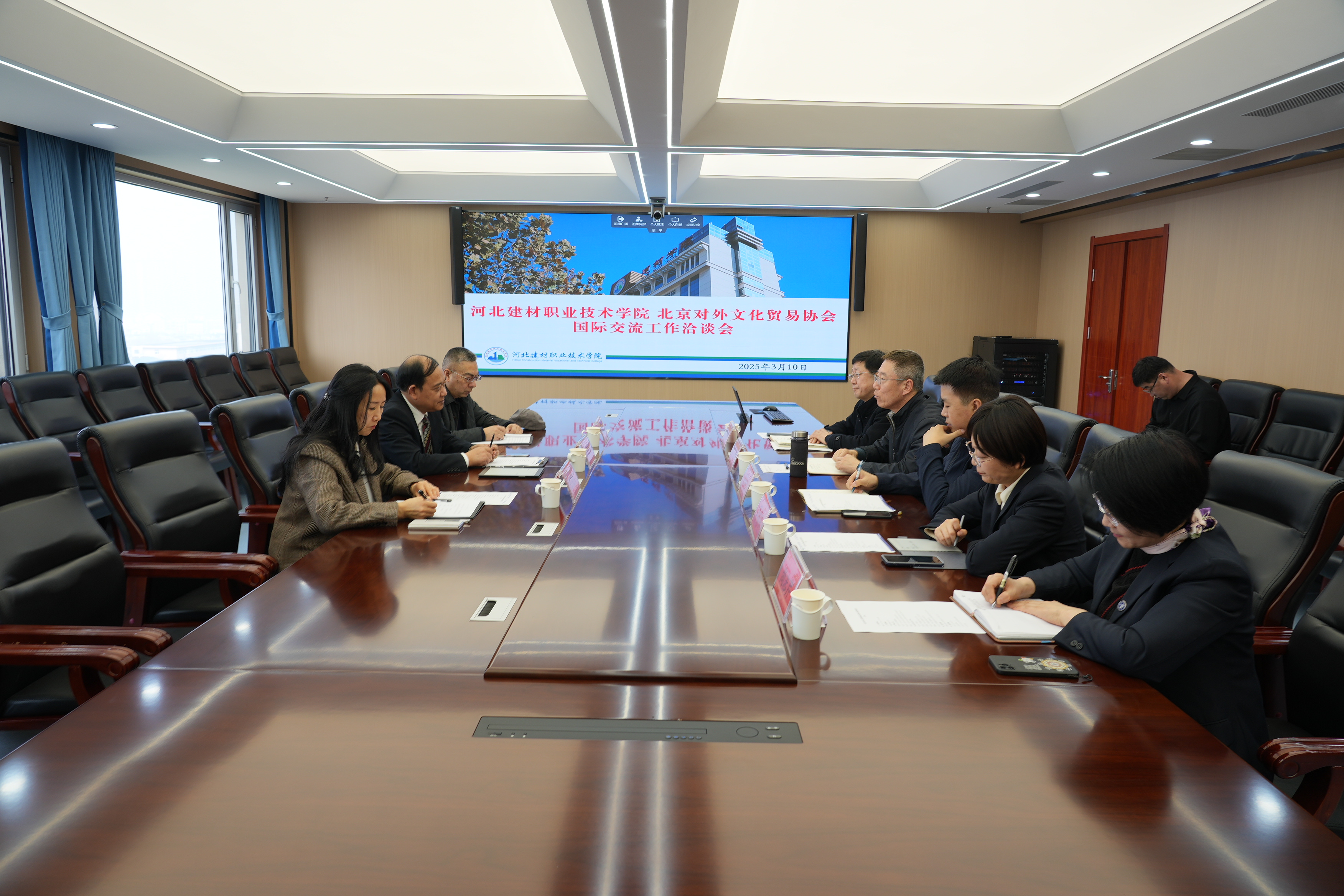 3月10日下午,北京对外文化贸易协会会长周正生、协会秦皇岛办事处副会长高庆军、办事处主任张晓红一行三人到访我院,就开展国际交流合作事宜进行考察调研。副院长朱玉春、高职教育研究中心主任张进宝、材料工程系副主任纪福顺等相关人员参加了会议。